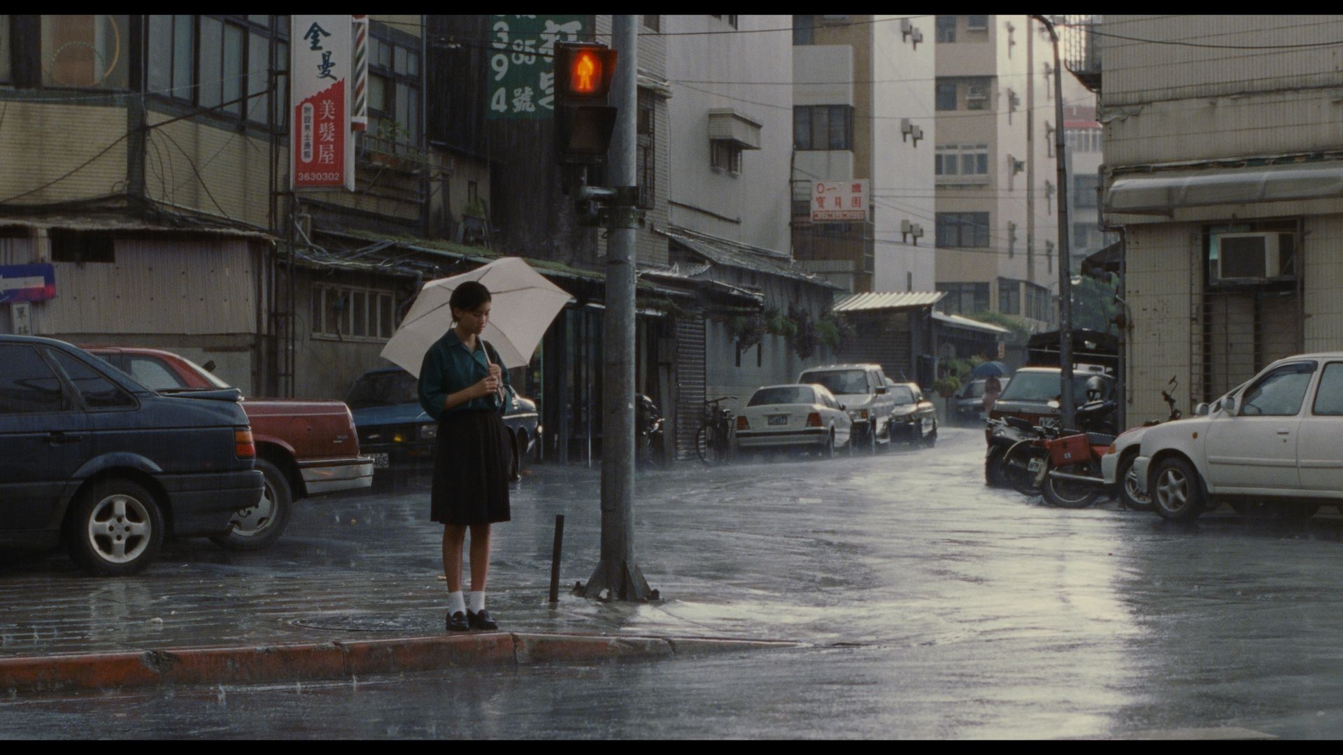 One of the most striking ways this comes through for me is Yang’s frequent use of off-centre compositions. Characters are often pushed to the side of the frame, surrounded by negative space or swallowed up by the city. We see them, at the edge of the screen, walking along the streets of Taipei or reflected in windows, faces blending with neon city lights and passing traffic. This visual displacement renders these characters small and seemingly insignificant against the vastness of the urban landscape, emphasizing the solitude and disconnection they carry within. It marks the quiet distance between the characters and their surroundings, from one another, and even from themselves.