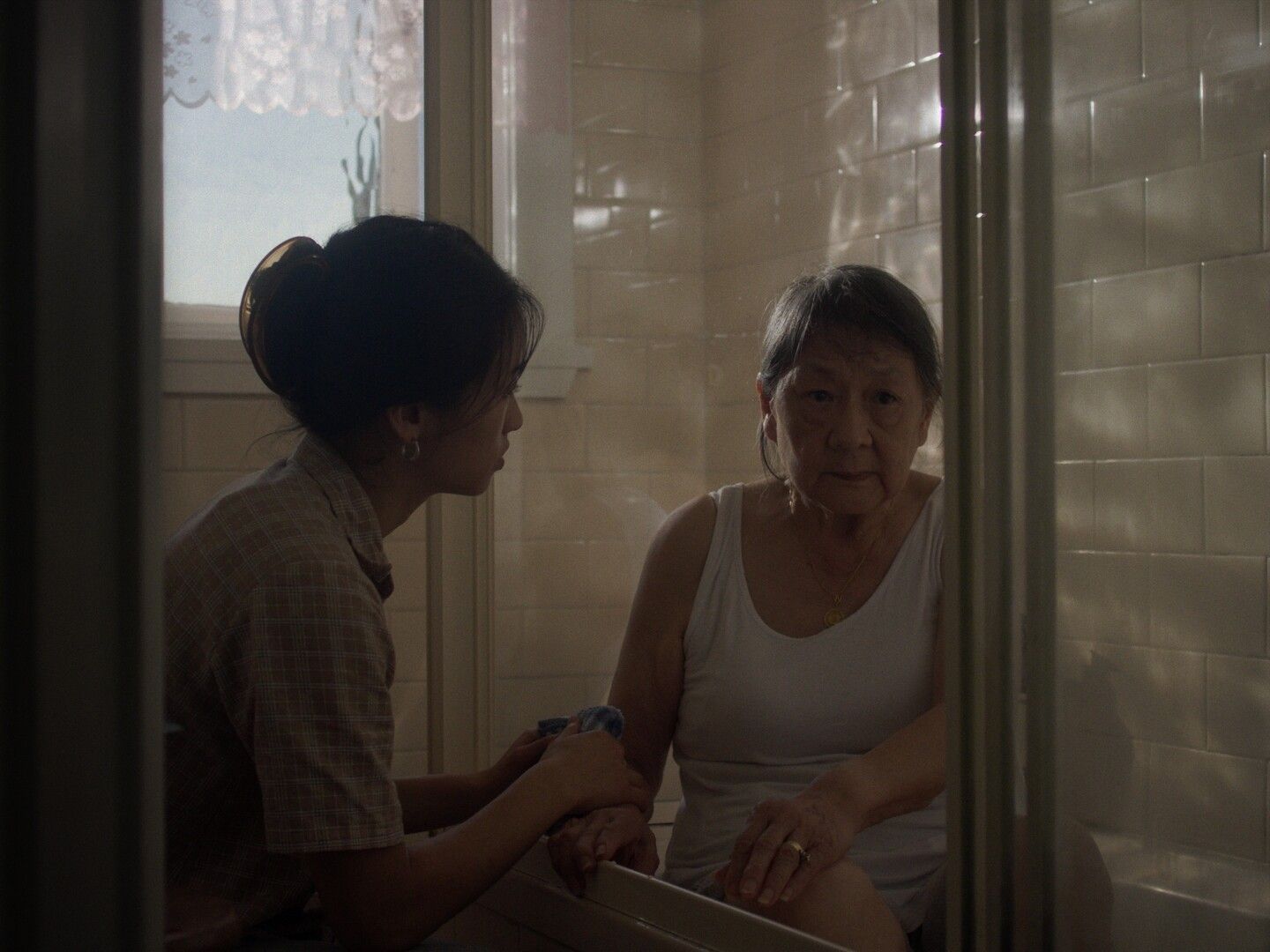 Following the bath, their conversation deepens further, giving new weight to the grandmother’s persistent questions about the protagonist’s personal life. We see them come to a shared emotional understanding that is very much rooted in care, vulnerability, and unspoken fears about what lies ahead. In an especially tender moment, the protagonist rests her head on her grandmother’s lap, a scene that parallels a similar exchange in Edward Yang’s