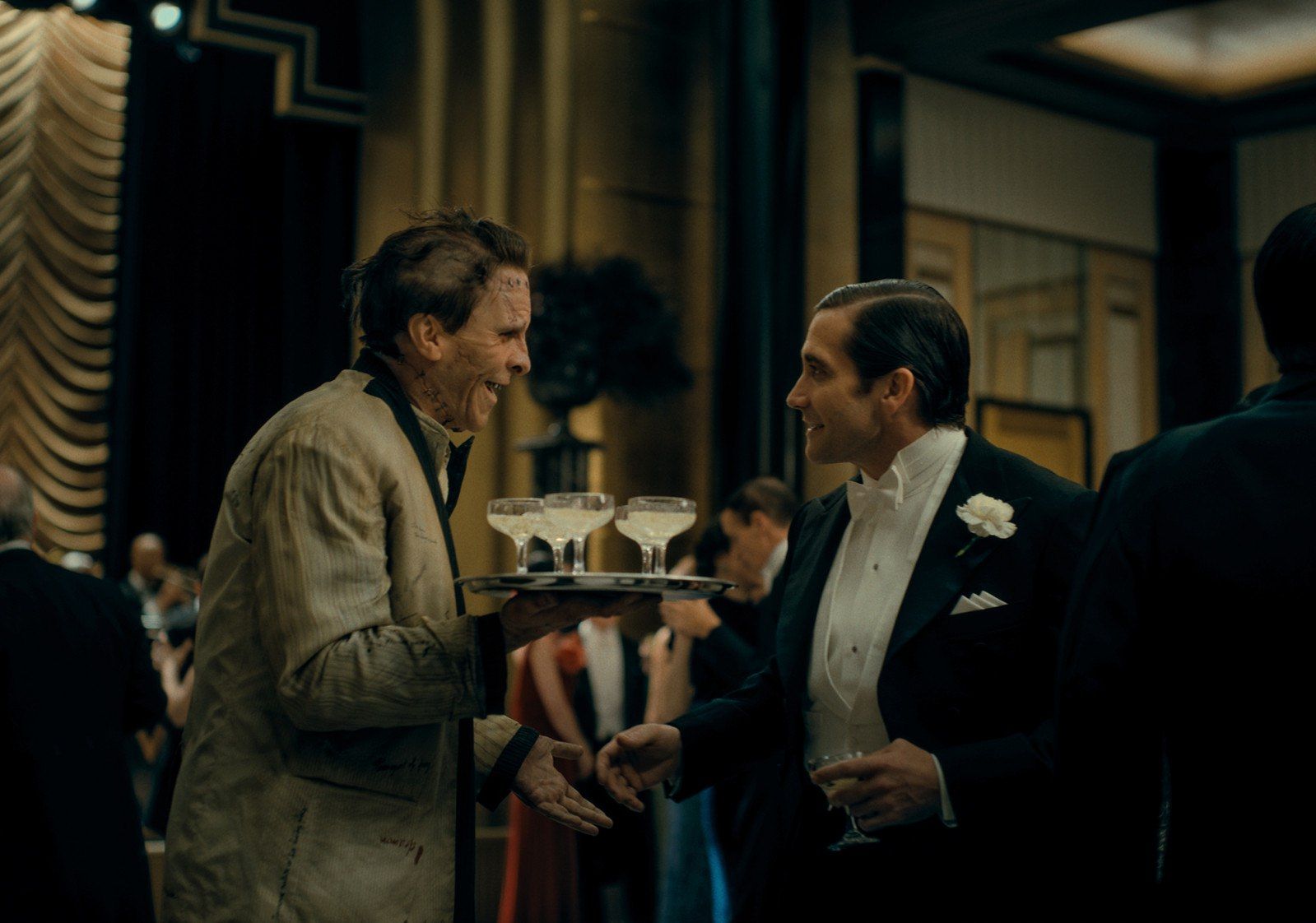 The Bride’s iconic saturated orange dress pops violently against the muted cityscape of the period setting, making her impossible to ignore. One particular dance sequence beneath a grand hotel chandelier felt strangely hypnotic, almost like choreography straight out of Netflix’s Wednesday.