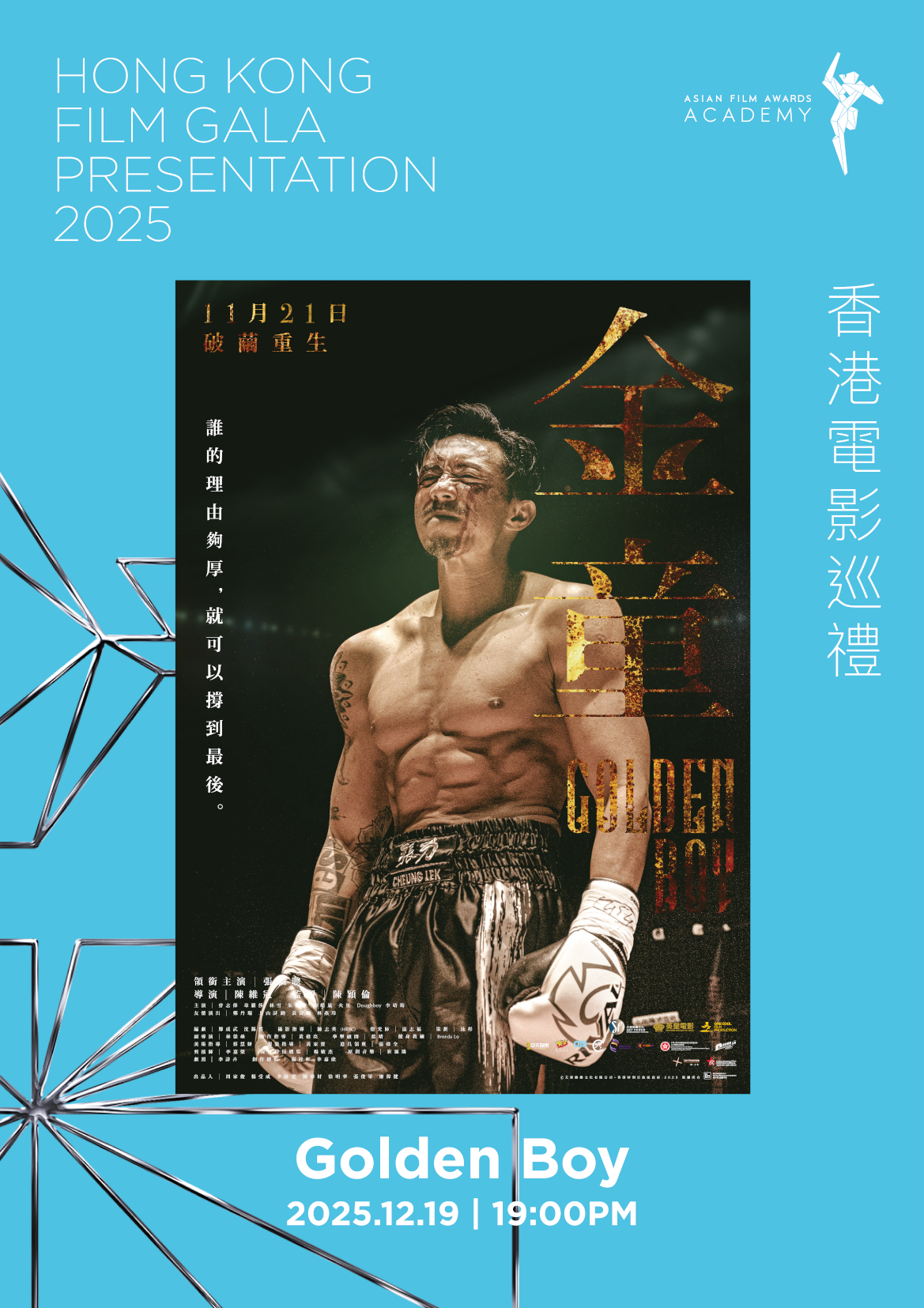 A decade ago, CHEUNG Lek was the brightest rising boxing star-known as “Golden Boy” – until a tragic incident stripped him of his freedom. Ten years later, released from prison, he comes face to face with FONG Yuen, the son he has never met. To claim the inheritance left by FONG Yuen’s mother, CHEUNG must learn to live with and take care of the boy. Thrust into fatherhood and confronted by past regrets, CHEUNG’s life is turned upside down once more. Through conflict and gradual reconciliation with his son, he begins to understand his true purpose. Confronting the ghosts of his past, CHEUNG decides to return to the ring-not only to reclaim his dream, but to become the role model his son deserves.